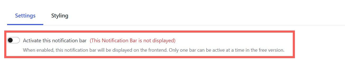 Use the Activate toggle to make sure your notification bar is active and displayed on your WordPress website.